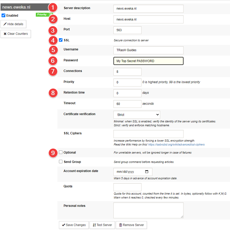 4. In the case of "Pause", you'll need to set a password and resume the job. or you set it to "Abort" and Sonarr/Radarr can look for another release.