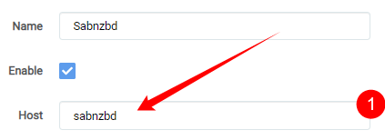 This could be a hostname, container name (use .internal domain like sabnzbd.internal when using hotio containers with VPN) or an IP Address